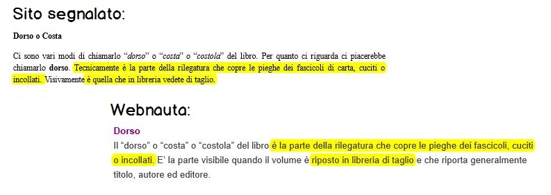 “Riguardo al titolo è chiaro che è un espressione molto generica e utilizzata in tantissimi campi, cercando esattamente l’espressione ANATOMIA DEL LIBRO su google troverà 55.000 risultati. Riguardo alle espressioni anche queste sono molto generiche. Il nostro contenuto tratta un argomento in comune questo è vero ma è assolutamente originale.”