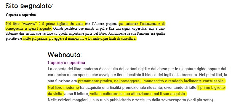Abbiamo analizzato allora i singoli paragrafi che effettivamente erano stati ripresi e ci siamo ritrovati con risultati come questo: