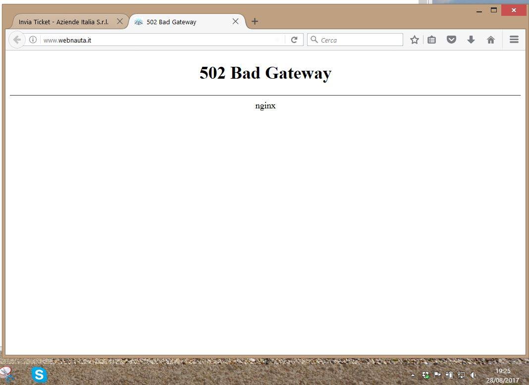 Nel bel mezzo della pubblicazione del Diario difficile di un lettore sulla spiaggia, che eccezionalmente vedeva un post giornaliero per un’intera settimana, webnauta è stato messo offline proprio dal suo provider ospitante, con questo bellissimo errore di Bad Gateway: